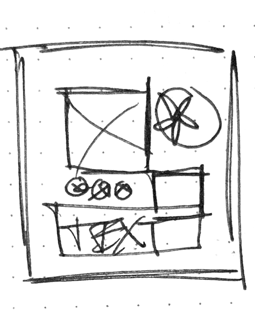 I needed to get my thoughts out on paper. It’s easier with a pen and my hand. I chose some of the elements in the sketches, but I didn’t love any of my full layouts.